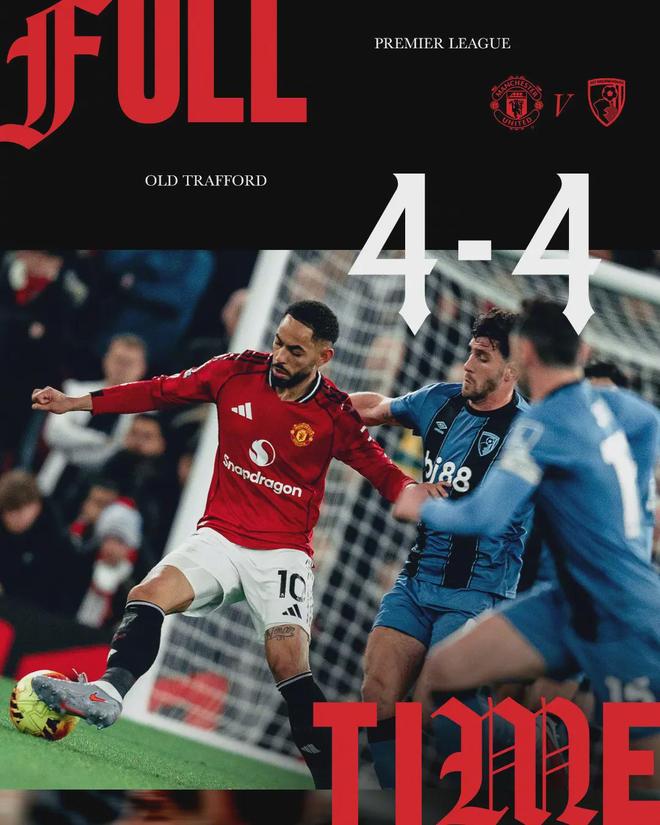 当终场哨声吹响时,老特拉福德记分牌上耀眼的4-4比分感觉就像是曼联本赛季的一个缩影——进攻端偶尔有精彩表现,但防守却漏洞百出。赛前,曼联在英超联赛中仅攀升至第六位,距前四仅一步之遥;伯恩茅斯已经6轮未尝胜绩。然而90分钟后,双方上演了一场被ESPN称为“可能是本赛季英超最好的比赛”的进球大战。在一场比赛中三次领先但未能获胜后,曼联球迷发现球队最宝贵的财富似乎是拉门斯在比赛最后阶段扑救时展示的门将手套。 01 战术挥杆 阿莫林的战术实验今晚显得令人眼花缭乱。从接任开始,这位年轻的葡萄牙教练就对3-4-3阵型的坚持近乎偏执。面对记者的提问,他有时会大声回应:“我是这个大俱乐部的教练,我想让媒体来决定我应该做什么吗?”本场比赛,在球队经验最丰富的中卫德里赫特和马奎尔双双受伤的情况下,阿莫里姆出人意料地将阵型调整为4-4-2。事实证明,临时防御是一场失败的赌博。 “下半场卢克肖+哈文和利马+哈文的中后卫组合没有默契。”詹俊在社交媒体上授课。后防线调整过大,给混乱的赛季增添了更多变数。 02 争议判罚 比赛进入上半场补时阶段,曼联获得任意球机会。伯恩茅斯球员有明显手球动作,但裁判判罚角球。这只是本场比赛众多争议判罚之一。整场比赛,裁判对于伯恩茅斯球员禁区内疑似手球犯规基本上“视而不见”。现场最令曼联球迷愤怒的帽子发生在上半场补时阶段。塞门霍与达洛特发生冲突时,直接掐断后者,但裁判只给双方出示黄牌。社交媒体上,球迷愤怒地称裁判为“瞎子和尚”,并讽刺称“对手应该是篮球队,所以手球不算犯规”。这些颇具争议的判罚无疑改变了比赛的进程,也暴露了英超裁判标准一致性的问题。 03 关于防守漏洞的数据并不是纳格威尔的谎言。曼联本赛季英超16轮仅一场不失球,打进26球,排名英超第六。阿莫林执教曼联在英超联赛中出场43场,其中6场比赛仅失1球。失球率低至14%,在执教至少40场英超比赛的教练中排名倒数第七s。本场比赛,两队一共完成39脚射门,创下了本赛季英超单场比赛射门次数纪录。对于一场英超比赛来说,这样的防守数据意味着防守组织存在系统性漏洞。前曼联球员卡拉格在天空体育的评论中委婉地指出:“在比赛最后阶段,当你将比分追至4-3时,你应该稳住局势,考虑不要再冒险,保持冷静并完成比赛。”然而曼联显然没有这么做。 04 进攻亮点与隐患 混乱之中,布鲁诺·费尔南德斯是曼联难得的持续亮点。葡萄牙中场在本场比赛中完成了传射。本赛季他在英超直接参与了12粒进球(5球7助攻),仅次于哈兰德的20次。根据英超官方数据,B费在许多重要方面领先联盟本赛季进攻数据统计:助攻第一(6次)、定位球创造机会第一(18次)、直传球数量第一(15次)。 B费的亮眼表现仅仅体现了曼联进攻端的缺陷。球队过于依赖球员个人的突发奇想,没有系统的进攻套路。阿马德和姆贝莫将缺席非洲杯,曼联的进攻火力将面临严峻考验。老特拉福德的夜色之下,记分牌上4-4的比分逐渐淡去。这是曼联自2013年5月以来在英超联赛中的最高比分,上一次是5-5战平西布罗姆维奇。比赛结束后,B费独自站在中圈,望着梦剧场的看台。在他脚下,2.3亿欧元的签约计划中存在着一些未解决的问题和战术混乱。卡拉格表示这场比赛让他想起了弗古球场的曼联儿子时代:快速、攻势足球,球员充满活力。但弗格森时代的曼联并不满足于4-4的平局,更不用说在三度领先后输掉胜利了。梦剧场今天不设防,四次领先,最终都崩溃了。三叉戟上堆满了金元,战术全失了。只有B费支持红魔旗帜,裁判争议更是雪上加霜。复兴之路十年坎坷,混乱中何时能见光明?